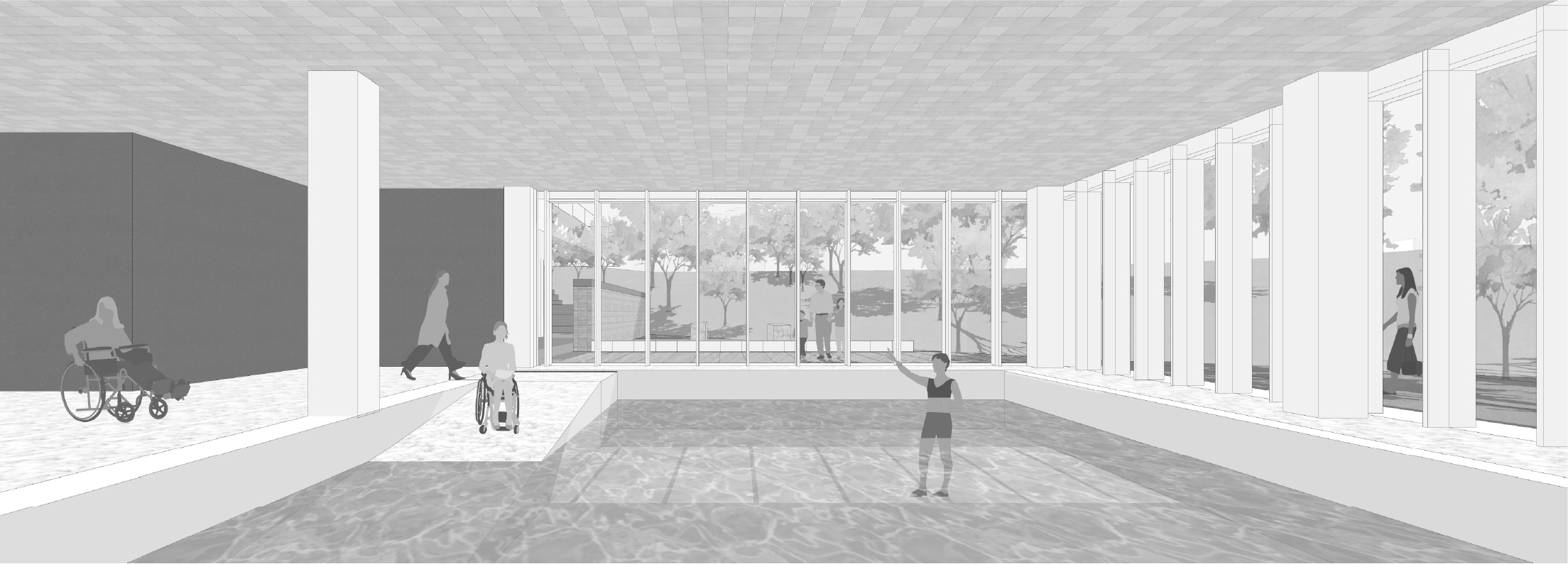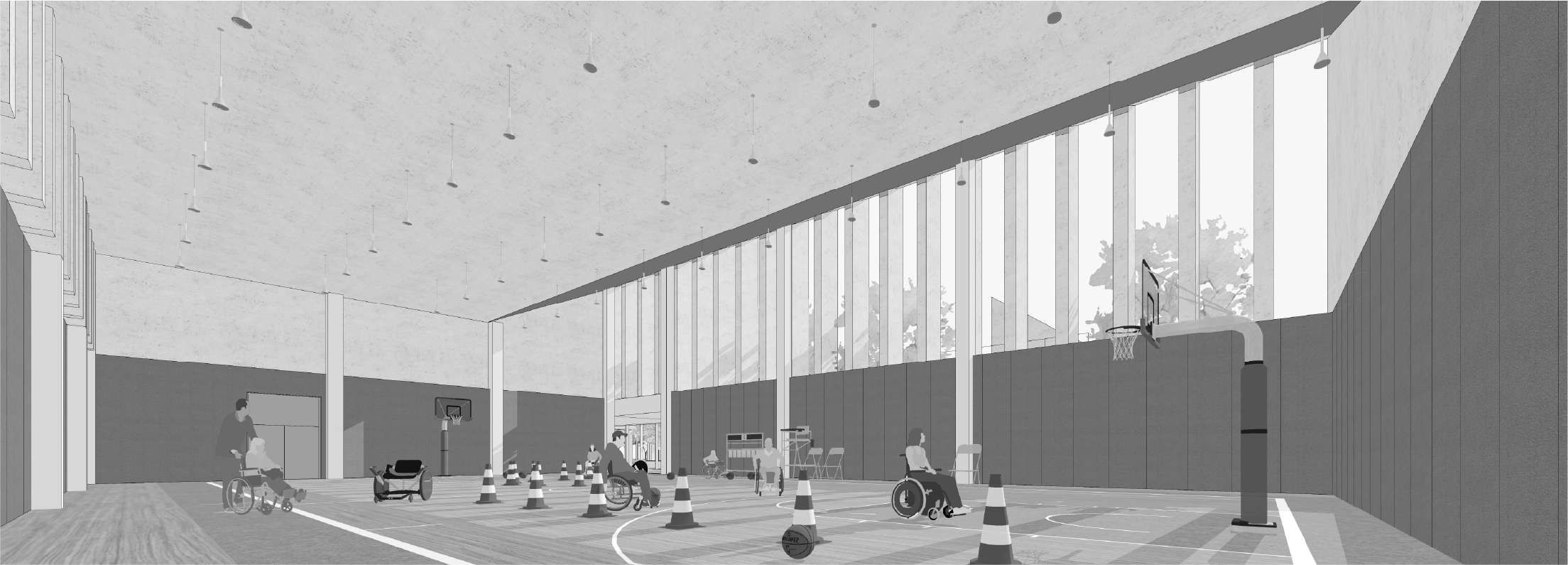 본 시설은 반다비 체육시설로서 장애인과 사회적 약자, 일반인 등 다양한 층을 수용할 수 있는 기능적 연결로서의 방법적 해결도 요구되고 있다.